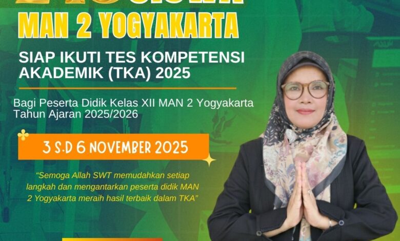 Yogyakarta (MAN 2 Yogyakarta) – Sebanyak 243 murid kelas XII MAN 2 Yogyakarta siap mengikuti Tes Kompetensi Akademik (TKA) 2025, yang akan dilaksanakan pada 3 hingga 6 November 2025. Kegiatan ini menjadi salah satu agenda penting dalam rangkaian evaluasi pembelajaran sekaligus langkah strategis madrasah dalam mempersiapkan peserta didik menuju jenjang pendidikan tinggi tahun pelajaran 2025/2026.