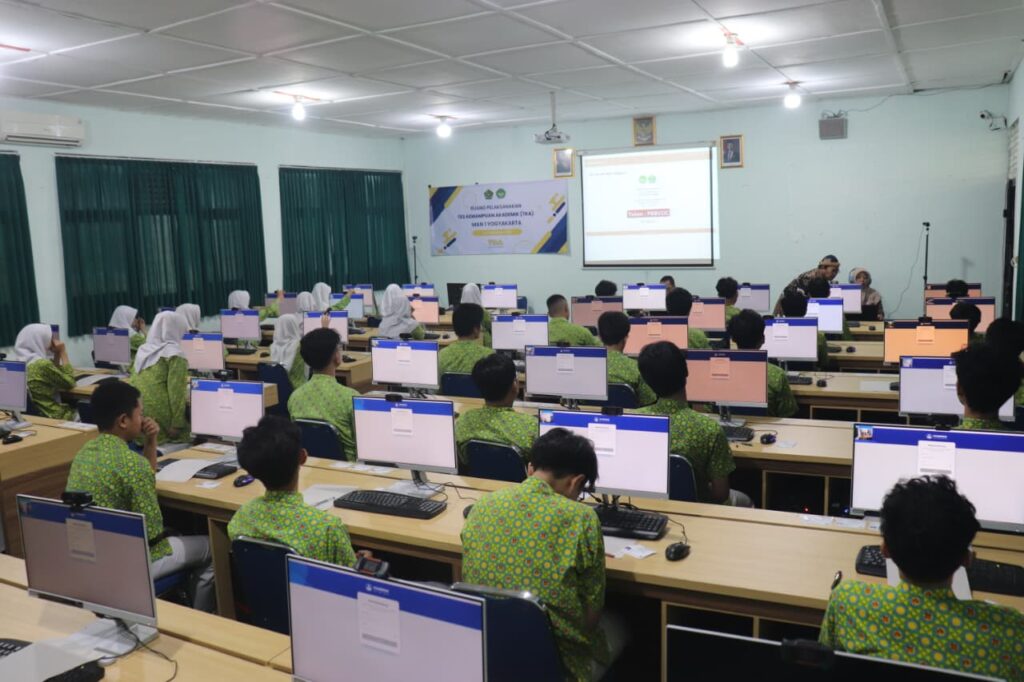Yogyakarta (MAN 1 Yogyakarta)– Sejumlah 273 murid kelas XII MAN 1 Yogyakarta mulai hari ini, Rabu, (5/10/2025) hingga Kamis (6/10/2025) mengikuti pelaksanaan TKA. Bertempat di tiga laboratorium komputer di MAN 1 Yogyakarta, hari ini, para peserta TKA akan mengerjakan tiga mata pelajaran wajib yang diujikan, yaitu Bahasa Indonesia, Bahasa Inggris, dan Matematika. Serta mata pelajaran pilihan pada hari kedua.