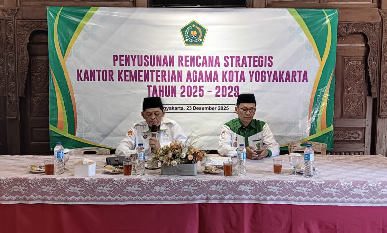 Yogyakarta (Humas) – Kantor Kementerian Agama Kota Yogyakarta melaksanakan Penyusunan Rencana Strategis Tahun 2025- 2029 pada Selasa, 23/12/2025 di RM Ingkung Grobog Jl. Ipda Tut Harsono dan diikuti oleh Kepala Kantor, Kasubbag TU, Kasi, Penyelanggara, Kamad, KTU Madrasah Penyusun Anggaran dan Pelaksana di Lingkungan Kankemenag Kota Yogyakarta.