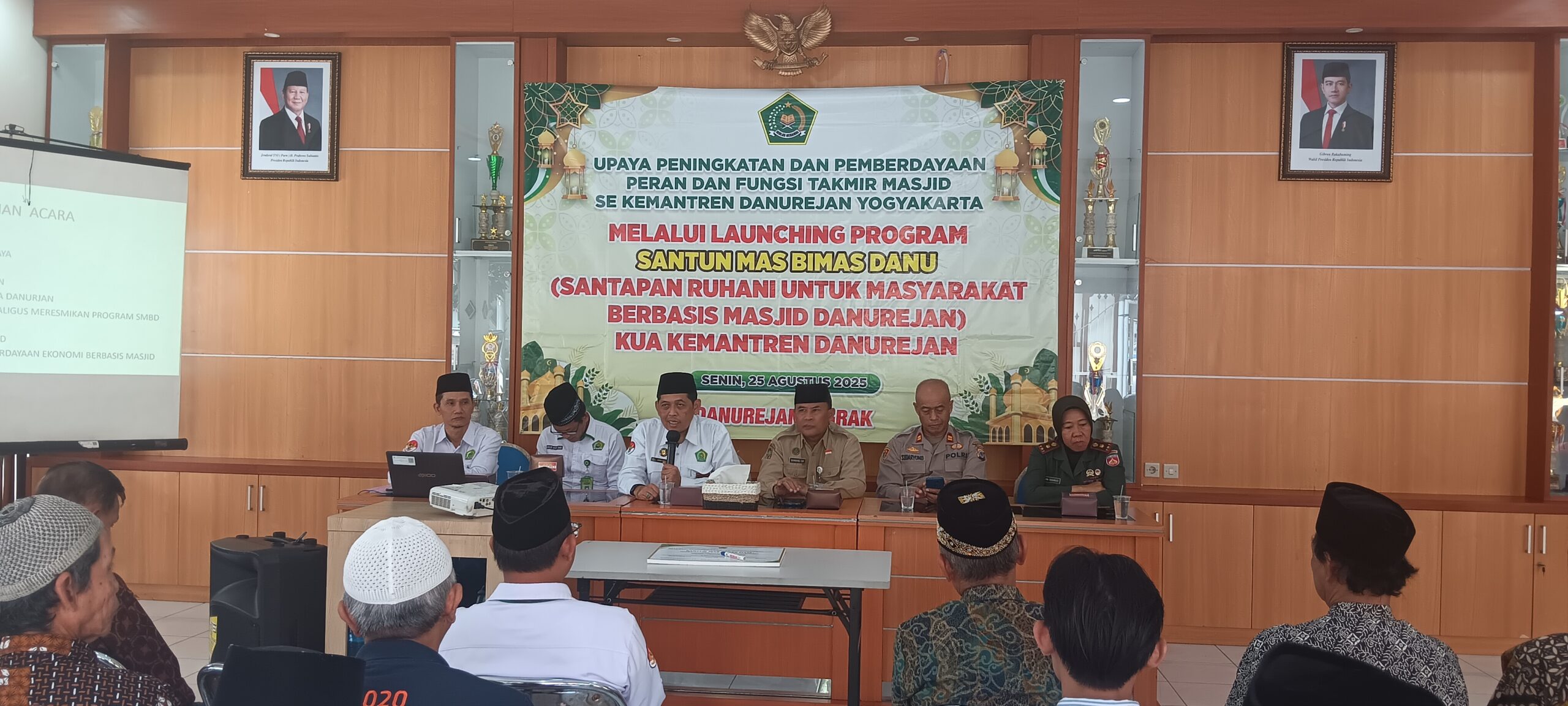 Yogyakarta (Humas) – Dalam Upaya Peningkatan dan Pemberdayaan Peran dan Fungsi Takmir Masjid, KUA Danurejan melaunching Program Santun Mas Bimas Danu pada Senin, 25/08/2025 di Aula Kemantren Danurejan.