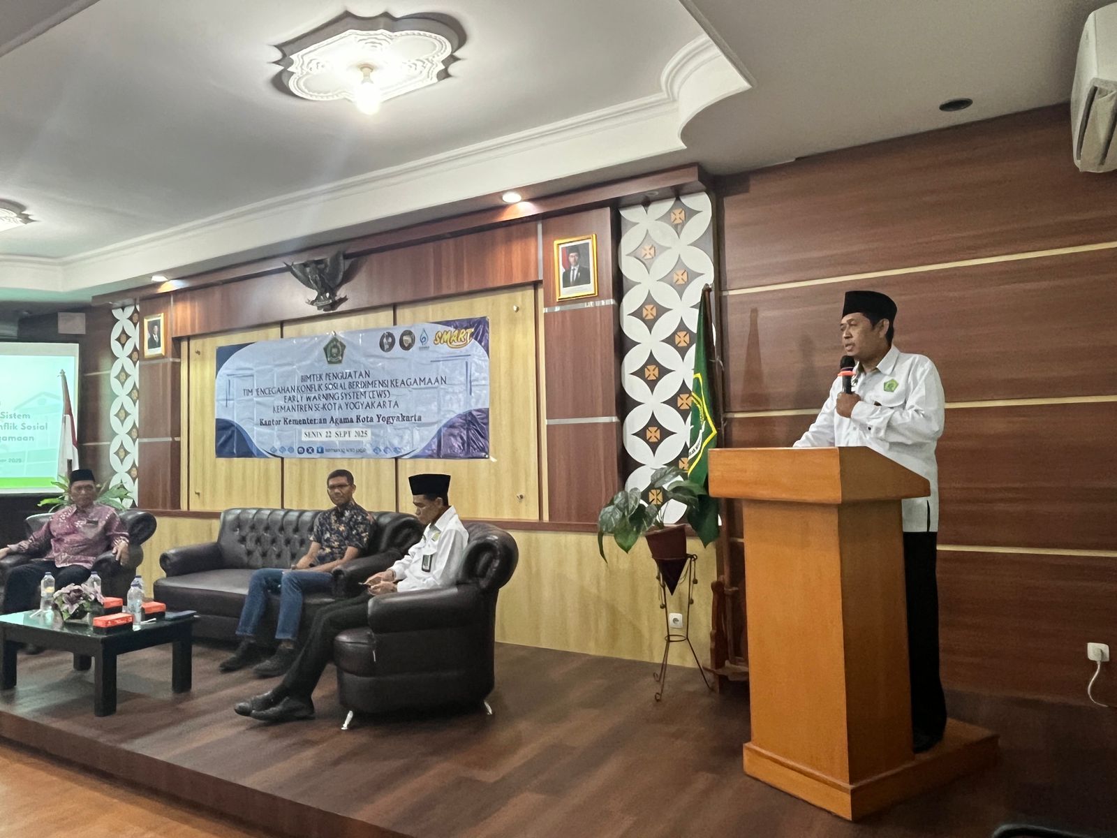 Yogyakarta (Humas) Seksi Bimas Islam Kankemenag kota Yogyakarta meneyelenggarakan kegiatan Bimbingan Teknis Pencegahan Konflik Sosial Berdimensi Keagamaan”Early Warning System ” pada hari Senin 22/09/2025 bertempat diaula 1 Kankemenag Kota Yogyakarta diikuti peserta dari perwakilan penyuluh agama islam kemantren se-kota Yogyakarta, ormas Islam, tokoh agama Islam. Narasumber Kompol Legowa Saputra dari Polda DIY, Nyke Lestari, SE, MM Bakesbangpol Kota Yogyakarta, H. Abdul Halim, S.Ag dari Forum Kerukunan Umat Beragama (FKUB) Kota Yogyakarta.