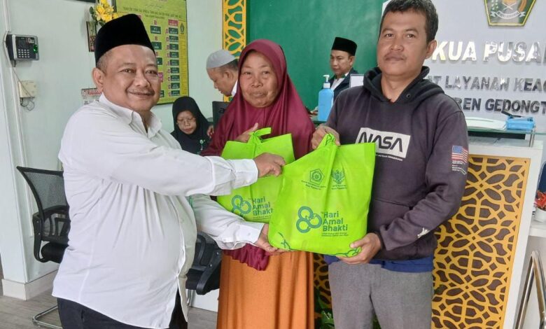 Yogyakarta — Dalam rangka memperingati Hari Amal Bakti (HAB) ke-80 Kementerian Agama Republik Indonesia, Kepala Kantor Urusan Agama (KUA) Gedongtengen, H. Noerohini, menyerahkan bantuan sembako kepada masyarakat sekitar KUA Gedongtengen, Selasa (23/12/2025).