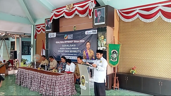 Yogyakarta, Kegiatan Sosialisasi Ikan yang Aman, Sehat, dan Bermutu dalam rangka Bulan Mutu BPPMHKP (Badan Pengendalian dan Pengujian Mutu Hasil Kelautan dan Perikanan) Tahun 2025 digelar di Pendopo Manunggal Kemantren Mergangsan, Senin (8/12/2025). Kegiatan ini menjadi bagian dari gerakan nasional untuk meningkatkan kesadaran masyarakat akan pentingnya mutu dan keamanan hasil perikanan.
