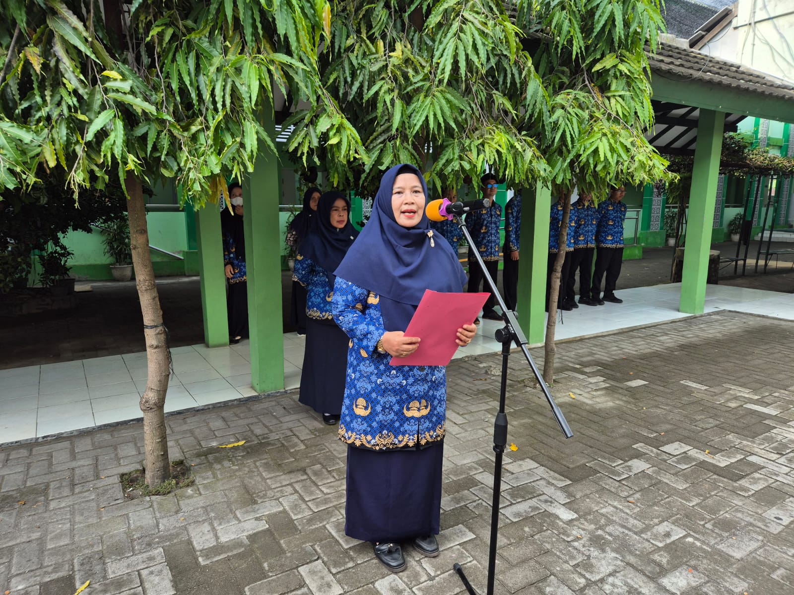 Suasana pagi itu tampak berwibawa dengan guru dan pegawai mengenakan seragam biru Korpri, sementara para siswa tampil rapi dalam seragam putih dan hijau khas hari Senin. Nuansa kebangsaan terasa kuat ketika bendera merah putih dikibarkan dengan diiringi lagu Indonesia Raya yang dinyanyikan dengan penuh penghayatan.