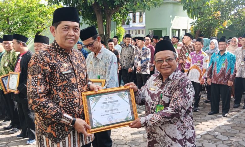 Kepala KUA Gedongtengen, H. Noerohini, S.Ag., M.H., menerima penghargaan dari Kepala Kantor Kementerian Agama Kota Yogyakarta pada apel Kemenag Kota Yogyakarta, Selasa (25/11). Penghargaan ini diberikan sebagai apresiasi atas capaian KUA Gedongtengen yang berhasil meraih predikat sebagai KUA Ramah Kelompok Rentan.