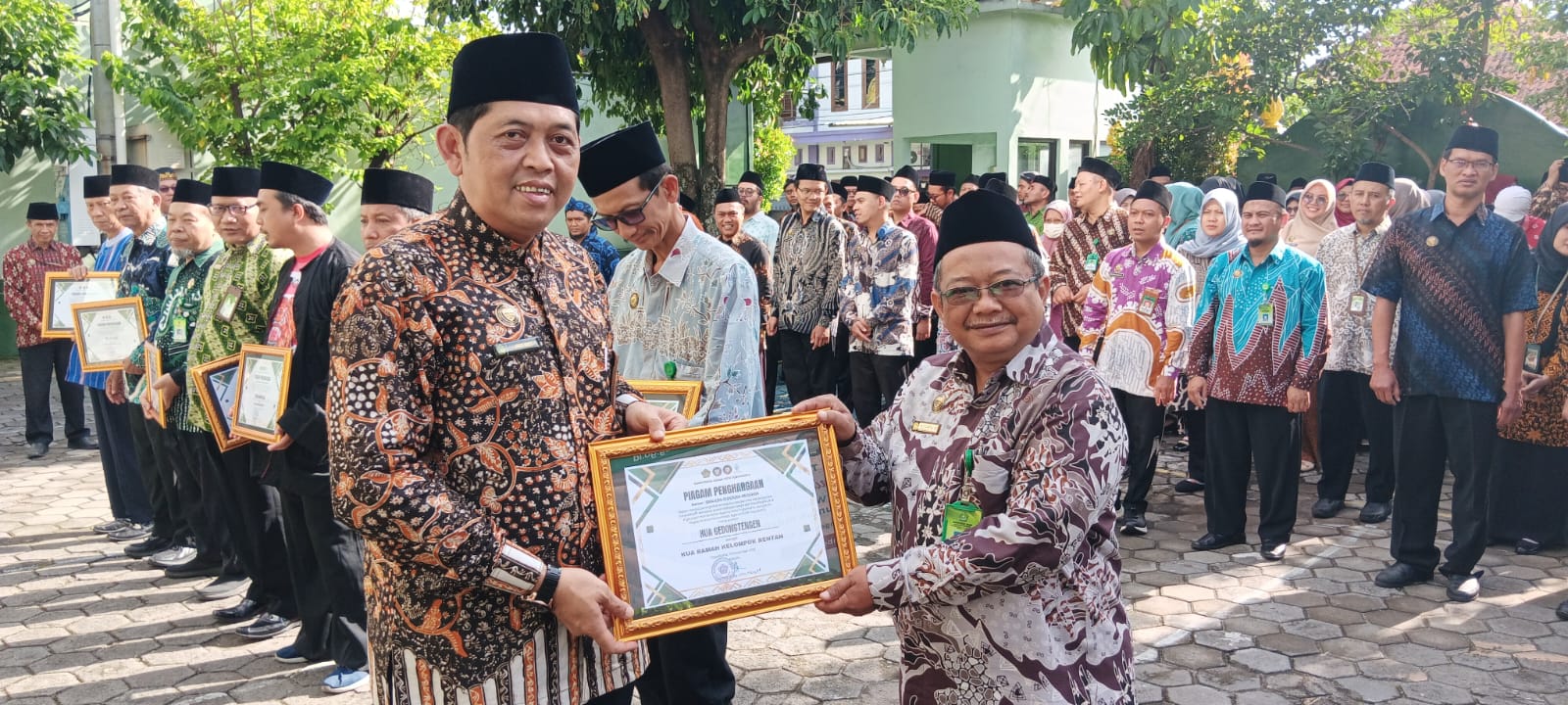 Kepala KUA Gedongtengen, H. Noerohini, S.Ag., M.H., menerima penghargaan dari Kepala Kantor Kementerian Agama Kota Yogyakarta pada apel Kemenag Kota Yogyakarta, Selasa (25/11). Penghargaan ini diberikan sebagai apresiasi atas capaian KUA Gedongtengen yang berhasil meraih predikat sebagai KUA Ramah Kelompok Rentan.