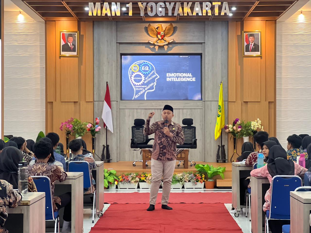 Dalam sambutannya, Kepala MAN 1 Yogyakarta Edi Triyanto, S.Ag., S.Pd., M. Pd. menyampaikan bahwa kepemimpinan bukan sekadar kemampuan mengatur orang lain, tetapi juga seni memahami diri sendiri dan orang di sekitar. Menurut Edi, seorang pemimpin sejati adalah mereka yang mampu mengelola emosi, merangkul perbedaan, serta menumbuhkan suasana kerja yang saling menghargai dan mendukung. “Kecerdasan emosional menjadi fondasi utama dalam membangun hubungan yang sehat di lingkungan organisasi dan dalam kehidupan bermasyarakat, tak terkecuali di lingkungan MAN 1 Yogyakarta,” terang Edi.