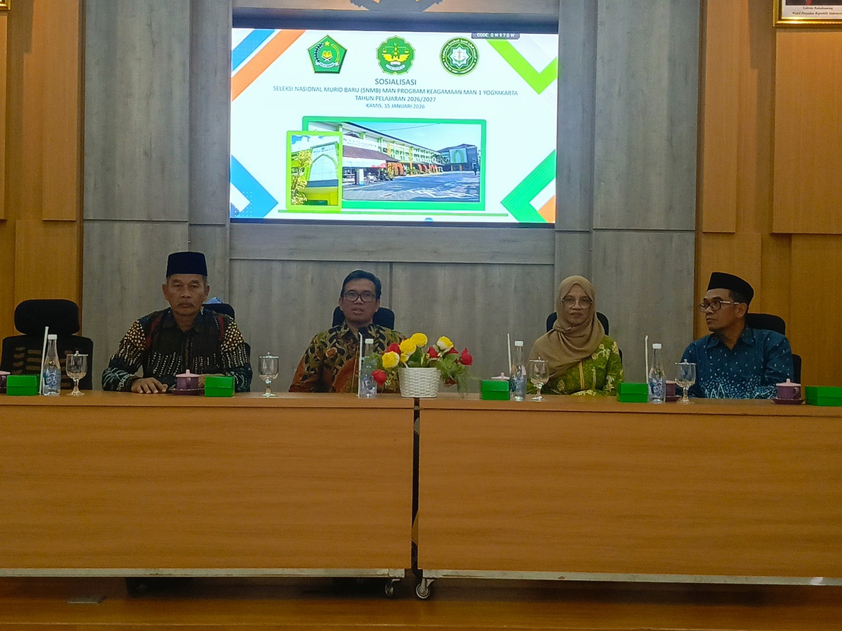 Setelah sesi studium generale, kegiatan dilanjutkan dengan Sosialisasi Seleksi Nasional Berbasis Madrasah Negeri (SNMB) MAN PK MAN 1 Yogyakarta, sebagai bagian dari upaya penguatan layanan pendidikan dan rekrutmen murid unggulan madrasah. (dee)