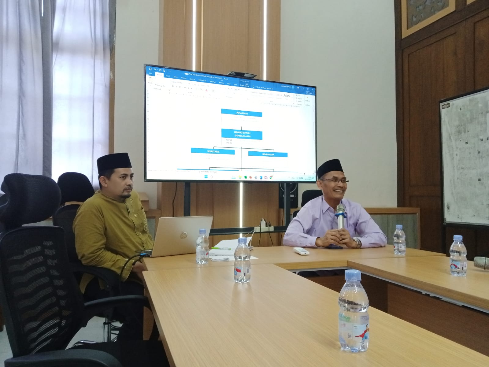 Rapat ini dihadiri oleh Kepala Madrasah, Kepala Tata Usaha, Wakil Kepala Madrasah, guru rumpun agama, serta perwakilan tenaga kependidikan. Dalam suasana demokratis dilakukan musyawarah untuk membentuk struktur ketakmiran Masjid Al Hakim. Terpilih sebagai penasehat adalah Kepala MAN 1 Yogyakarta Edi Triyanto dan Kepala Tata Usaha MAN 1 Yogyakarta Bahar Rozak, dengan Kanit Keagamaan MAN 1 Yogyakarta Muhamad Amin sebagai ketua dan Kanit Pontren MAN 1 Yogyakarta Latifah Rahmawati sebagai wakil ketua.