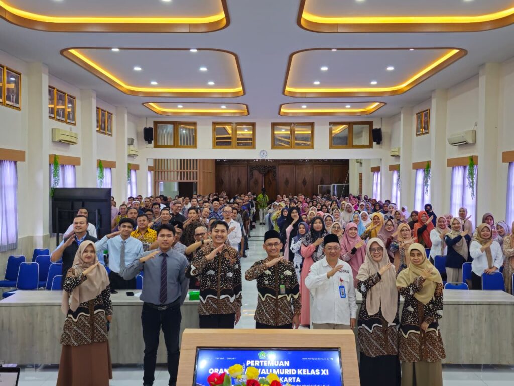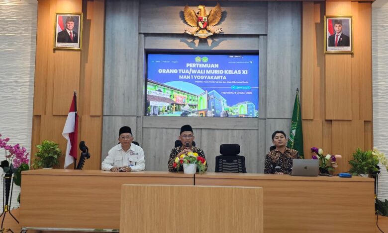 Yogyakarta (MAN 1 Yogyakarta) – MAN 1 Yogyakarta kembali menunjukkan komitmennya sebagai lembaga pendidikan yang tidak hanya unggul secara akademik, tetapi juga progresif dalam membentuk generasi muda yang siap bersaing di tingkat global. Dalam rangka mempererat sinergi antara madrasah dan orang tua/wali murid, MAN 1 Yogyakarta mengadakan Pertemuan Orang Tua/Wali Murid Kelas XI pada Rabu (8/10/2025) di aula madrasah. Pertemuan ini menjadi momentum penting untuk menyampaikan berbagai program unggulan yang dirancang secara matang demi masa depan murid.