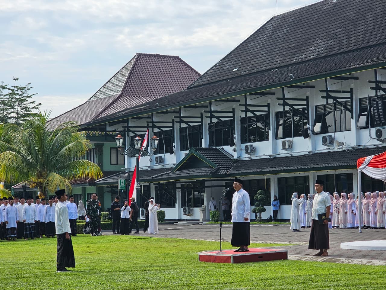 Yogyakarta (MAN 1 Yogyakarta) – Sebanyak 295 murid kelas X dan 25 guru serta tenaga kependidikan dari MAN 1 Yogyakarta turut ambil bagian dalam Apel Hari Santri 2025 yang digelar di Halaman Balai Kota Yogyakarta pada Rabu pagi (22/10/2025). Kegiatan ini menjadi puncak peringatan Hari Santri sekaligus menandai satu dekade penetapan Hari Santri sejak 22 Oktober 2015.
