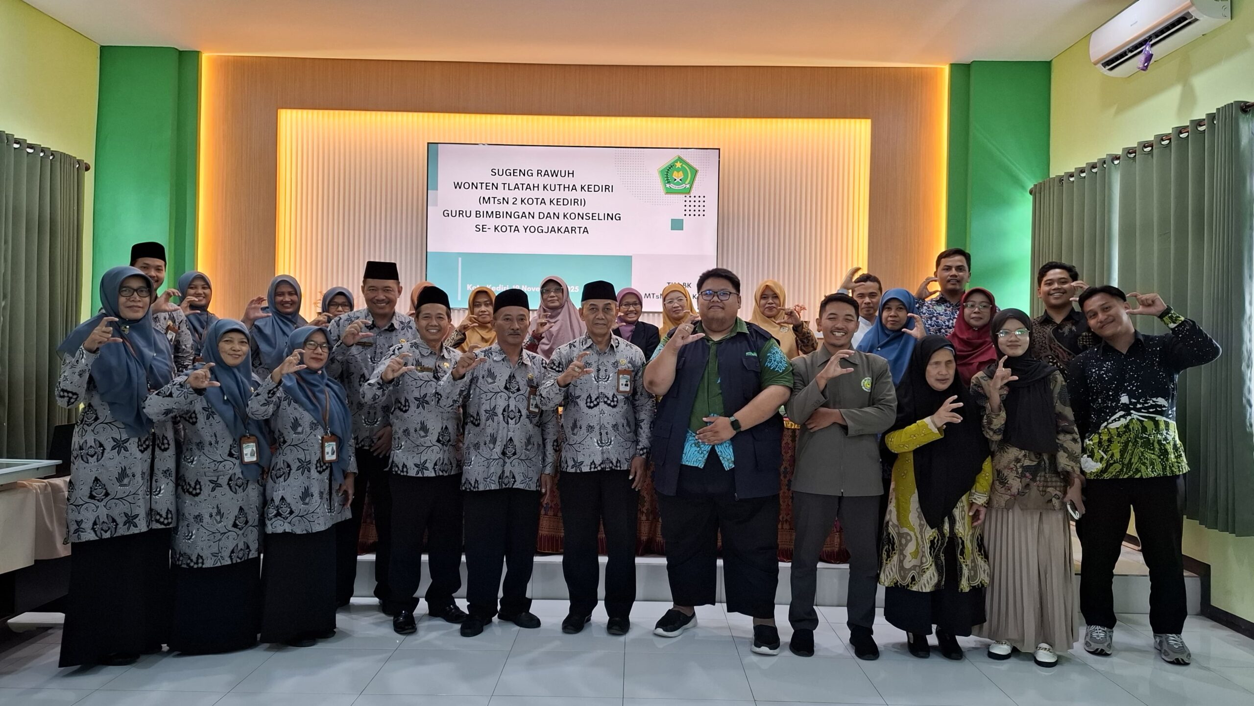 Rombongan Studi tiru tiba di madrasah yang terletak di wilayah Banjaran, Kota Kediri dan disambut dengan penampilan menarik dari tim pramuka garuda. Kepala MTsN 2 Kota Yogyakarta, Muhammad Nizar, M. Pd menyambut kedatangan rombongan didampingi Kepala Tata Usaha dan dewan guru. Dalam pertemuan dibahas beberapa hal diantaranya program BK yang diterapkan, best practise yang telah dilakukan dan administrasi harian BK.