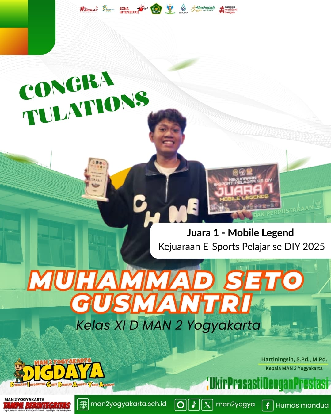 Kemenangan Seto menjadi bukti bahwa dunia digital dapat menjadi ruang prestasi yang positif bila diiringi semangat, kedisiplinan, dan sportivitas. Ia tidak hanya membawa nama pribadi, tetapi juga mengharumkan MAN 2 Yogyakarta di kancah E-Sport pelajar tingkat DIY.