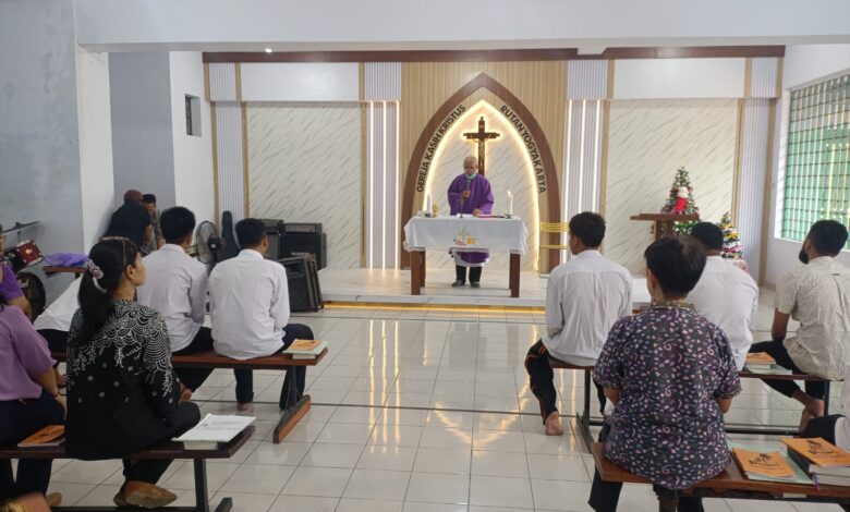 Yogyakarta (Garakat), Penyuluh Agama Katolik Kankemenag Kota Yogyakarta secara serentak menyelenggarakan Misa Rabu Abu di Rutan dan Lapas Kelas IIA Yogyakarta pada Hari Rabu, 18/2/2026. Hal ini dilaksanakan karena Gereja sejagat mengawali masa Puasa dan Pantang tahun 2026 dilaksanakan pada hari ini dengan tema untuk Keuskupan Agung Semarang (KAS): “Gereja Berjuang Menghadirkan Masyarakat yang Bahagia dan Sejahtera”