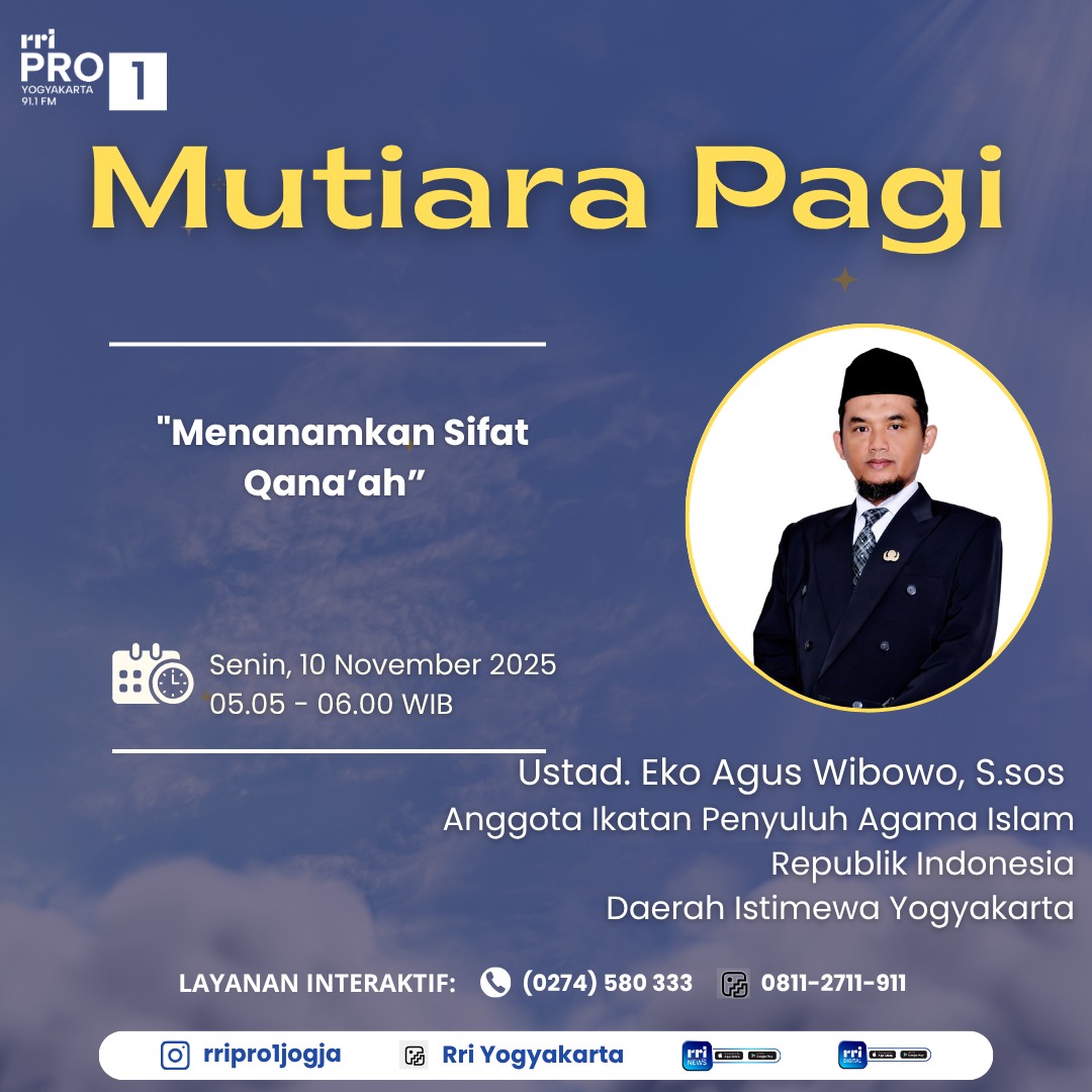 Program “Mutiara Pagi” RRI Jogja terus menjadi salah satu wadah efektif dalam menyebarkan nilai-nilai keislaman yang meneduhkan hati dan memperkuat iman masyarakat. Melalui siaran ini, diharapkan semakin banyak pendengar yang mampu menanamkan sifat qana’ah dalam kehidupan sehari-hari.[ekoAW]