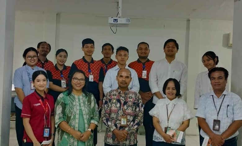 Dalam konteks kekinian ada banyak masalah atau tantangan yang dihadapi oleh setiap insan manusia, maka dengan rendah hati mari kita libatkan Tuhan Yesus dalam lika liku hidup kita baik saat senang maupun ketika kita menghadapi masalah. Tuhan Yesus bersabda “Datanglah kepada-Ku hai kamu semua yang letih lesu dan berbeban berat Aku akan memberikan kelegaan kepadamu” (Bdk Mateus 11:28). Demikian pemaparan Edelbertus. Materi pembinaan diselingi dengan lagu-lagu pujian yang dipandu oleh Zenny Tulandi sehingga suasana menjadi lebih semarak yang memberi semangat. Setelah itu foto Bersama dan para peserta kembali ke unit kerja masing-masing untuk melanjutkan pekerjaan harian mereka. (ej)