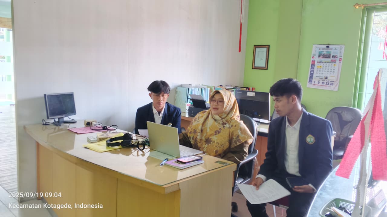 Penyuluh Agama Islam KUA Kotagede, Empip Hapipah, memberikan arahan dan bimbingan terkait cara kerja Program Sertifikat Halal (Sehati) kepada mahasiswa Praktik Pengalaman Lapangan (PPL) dari STAI Giwangan, Jurusan Manajemen Pendidikan Islam, Fakultas Tarbiyah. Kegiatan ini dilaksanakan pada Jumat, 19 September 2025 di Aula KUA Kotagede.