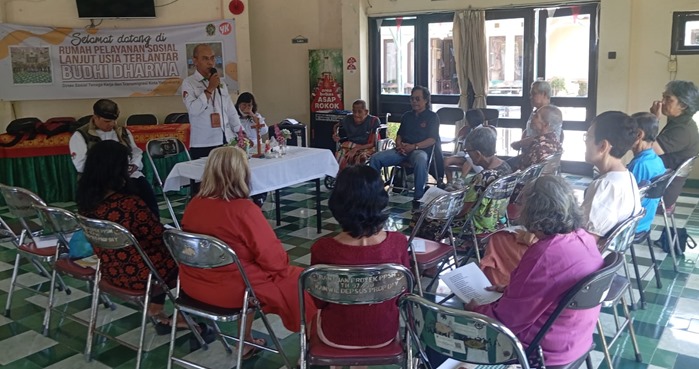 Yogyakarta (Garakat) – Penyuluh Agama Katolik Kantor Kementerian Agama Kota Yogyakarta Kristoforus Moses Jamwav SE, memimpin Ibadat Sabda dalam pembinaan iman bagi Lansia Kristiani terlantar di UPT Rumah Pelayanan Sosial Lanjut Usia terlantar Budhi Dharma, Jl Ponggalan, UH VII/203 Gowangan Kec. Umbulharjo, Kota Yogyakarta pada hari Senin 13/10/2025.