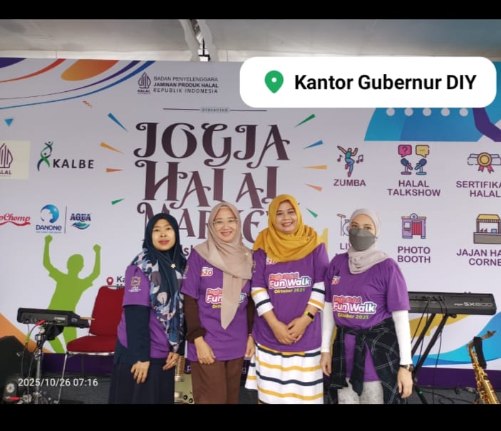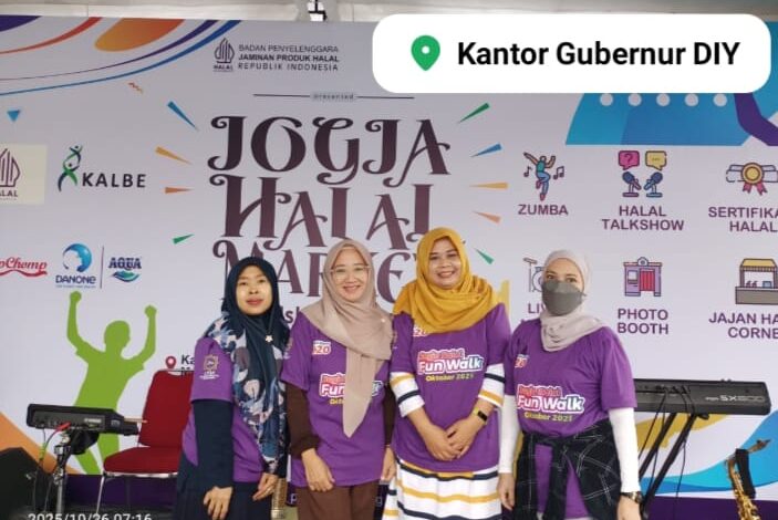 Yogyakarta (KUA Ngampilan) _ Hartatik Penyuluh yang sekaligus sebagai P3H, Minggu, 26 Oktober 2025, jam 06.00 sampai selesai di Kantor Gubernur DIY, mengikuti kegiatan Jogja Halal Market yang di adakan kerja sama BPJPH RI dan Pemda DIY. Kegiatan ini menjadi ajang promosi dan edukasi produk halal unggulan. Dan diikuti beberapa rangkaian acara yaitu booth halal center, konsultasi sertifikat halal, dan diskusi ringan bersama BPJPH RI.