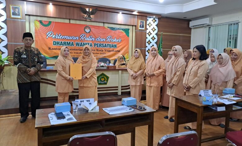Dharma Wanita Persatuan Kementrian Agama Kota Yogyakarta, hari ini Rabu ,8 Oktober 2025 bertempat di Aula 1 Kantor Kemenag Kota Yogyakarta gelar pertemuan rutin dengan tema : “Penguatan Pondasi Informasi Dharma Wanita”.
