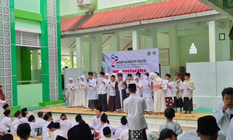 Yogyakarta (MIN 1 Yogyakarta) — Perayaan Hari Santri Nasional 2025 di Masjid Bustanurrasyid MIN 1 Yogyakarta berlangsung meriah dan sarat makna. Salah satu penampilan yang paling memukau perhatian adalah pembacaan puisi bersama dari para peserta ekstrakurikuler Literasi Bahasa Indonesia, yang tampil dengan penuh penghayatan pada pukul 09.10 WIB hingga selesai.