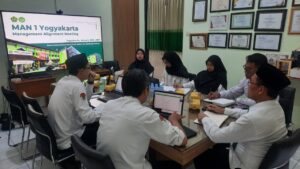 Yogyakarta (MAN 1 Yogyakarta) — Dalam memperkuat sinergitas MAN 1 Yogyakarta menyelenggarakan Rapat Manajemen Pekanan pada senin (26/1/2026) yang dihadiri oleh Kepala Madrasah, Kepala Tata Usaha, Wakil Kepala Madrasah bidang Kurikulum, Kesiswaan, Kehumasan, Sarana dan Prasarana, Kepala Unit Keagamaan, Bendahara Madrasah, serta Bendahara Komite Madrasah. Rapat ini dilaksanakan sebagai forum koordinasi strategis dalam penguatan tata kelola dan peningkatan mutu pendidikan madrasah.