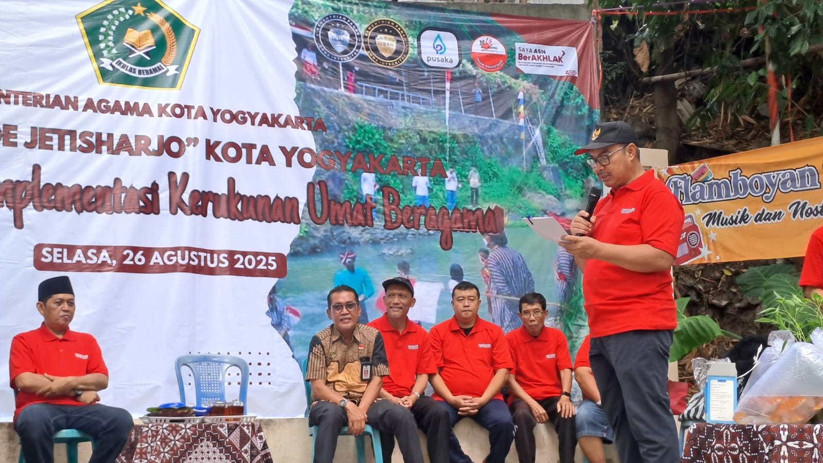 Yogyakarta (Humas) – Kantor Kementerian Agama Kota Yogyakarta menggelar aksi reresik kali Code, Selasa (26/8/2025). Kegiatan berlangsung di Kalurahan Cokrodiningratan, Jetis, Yogyakarta. Sekitar 200 orang berpartisipasi dalam kegiatan tersebut. Termasuk Forum Kerukunan Umat Beragama (FKUB) Kota Yogyakarta.