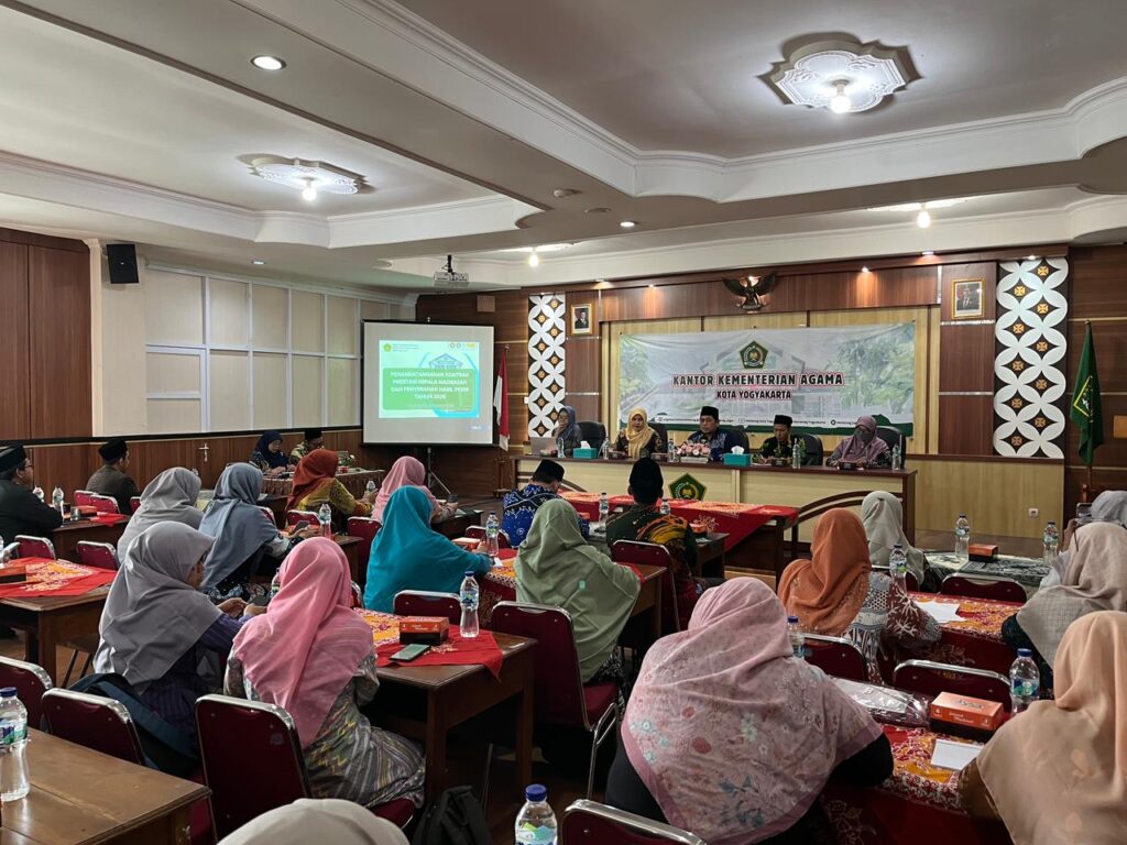 Yogyakarta (Dikmad) – Seksi Pendidikan Madrasah Kantor Kementerian Agama Kota Yogyakarta menggelar Penandatanganan Kontrak Prestasi Kepala Madrasah dan Penyerahan Hasil PKKM Tahun 2025. Kegiatan bertempat di Aula 1 Kantor Kementerian Agama Kota Yogyakarta, Kamis (29/01/2026) dihadiri Kepala Kantor H. Ahmad Shidqi, S.Psi., M.Eng, Kepala Seksi Pendidikan Madrasah Hj. Elfa Tsuroyya, S.Ag., M.Pd.I., M.Pd. Pengawas madrasah jenjang RA dan MI Ratini, S.Ag., M.S.I. jenjang MTs Ma’ruf Yuniarno, S.Pd.I., MA, S.TP, jenjang MA Evi Effrisanti, S.TP. dan Staf Seksi Pendidikan Madrasah Serta Kepala Madrasah Jenjang RA, MI, MTs dan MA.