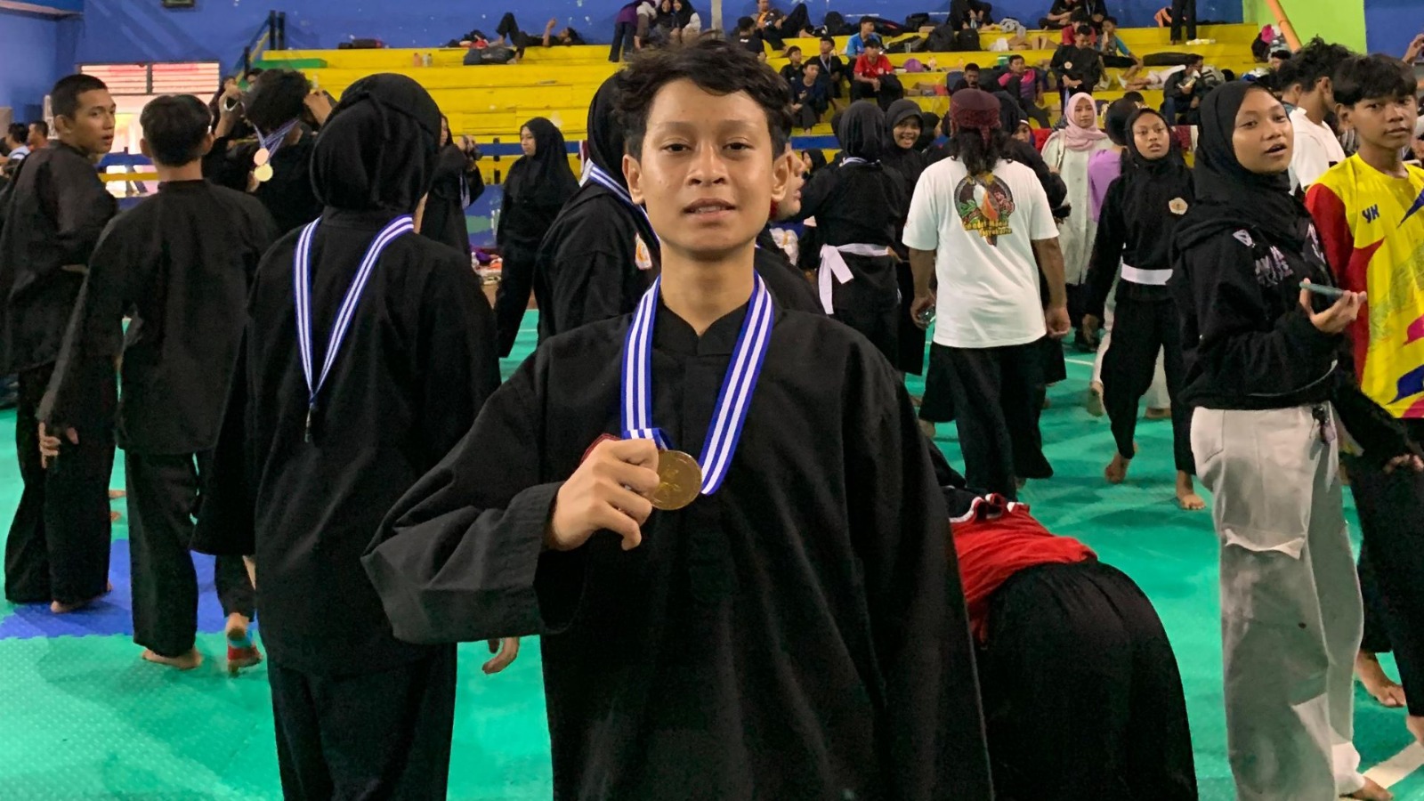 Kota Yogyakarta (MAN 1 Yogyakarta) — Kembali menorehkan prestasi, kini MAN 1 Yogyakarta mendapat berita bahagia dari seorang pesilat muda, Among Dwiatmo. Ia berhasil menyabet Juara 2 Tanding kelas A putra pada Kejuaraan Pencak Silat Antar-Pelajar Kota Yogyakarta yang dilaksanakan oleh Ikatan Pencak Silat (IPSI) Kota Yogyakarta. Kejuaraan ini dilaksanakan di GOR Kridosono pada Kamis (06/02/25) hingga Jum’at (08/02/25) lalu. Siswa kelas X C ini membuktikan bahwa MAN 1 Yogyakarta tidak hanya berprestasi dalam bidang akademik, namun, juga di bidang non-akademik.
