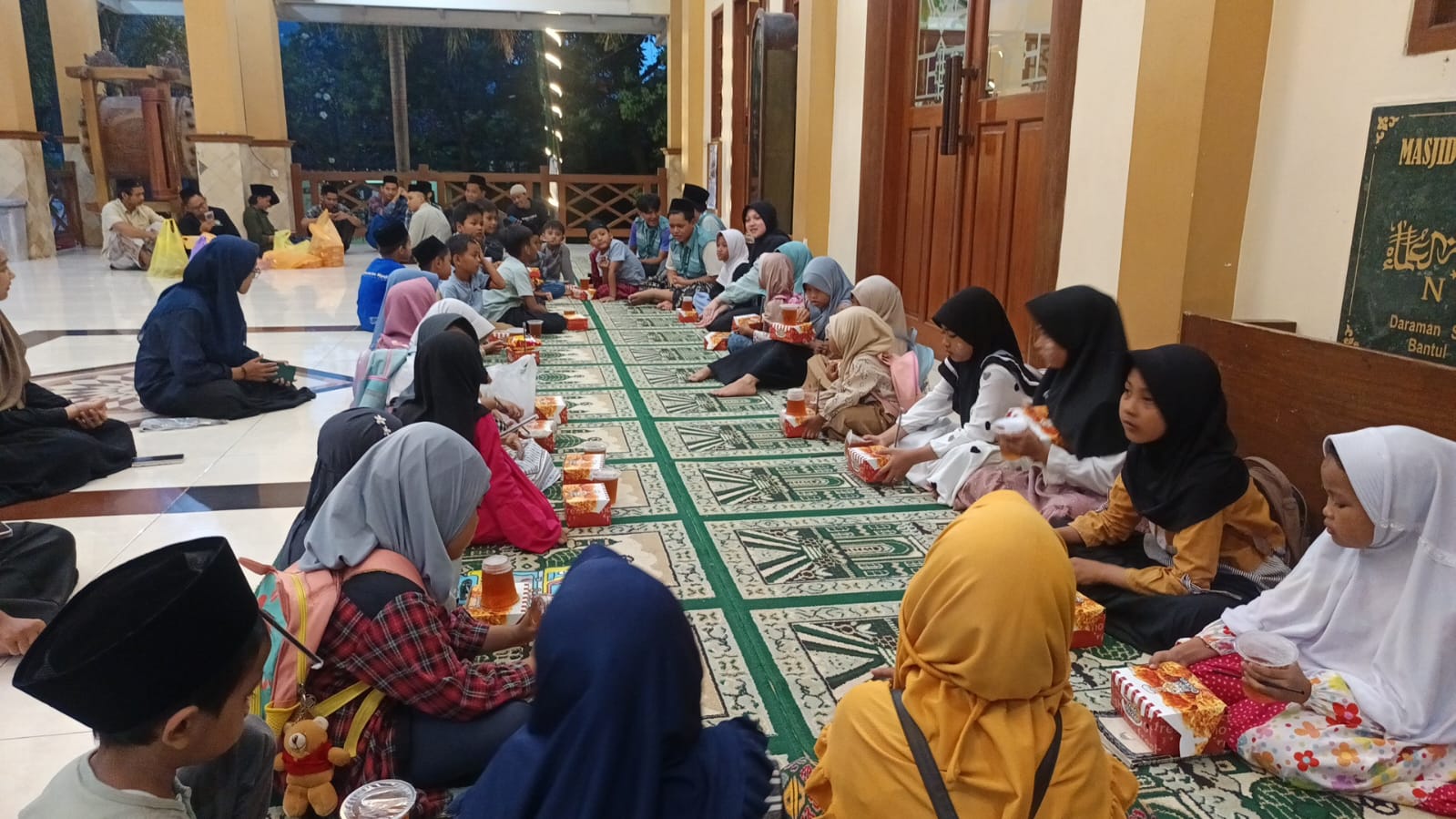 Menjelang waktu berbuka, kegiatan dilanjutkan dengan games edukatif dan reflektif. Permainan dirancang untuk melatih kerja sama, kesabaran, dan komunikasi positif antar peserta lintas usia. Tawa ceria anak-anak berpadu dengan nilai pembelajaran yang disisipkan secara halus. Momentum menunggu azan magrib pun berubah menjadi waktu yang produktif dan bermakna.