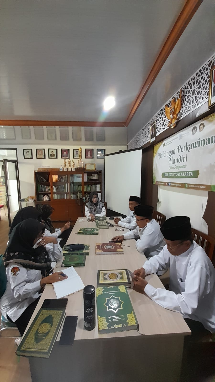 Tadarus Al-Qur’an diikuti oleh seluruh pegawai KUA Jetis dengan penuh khidmat di Aula Balai Nikah. Suasana religius terasa sejak awal kegiatan, menjadi pengingat bahwa setiap amanah dan layanan kepada masyarakat hendaknya berlandaskan nilai-nilai Al-Qur’an.