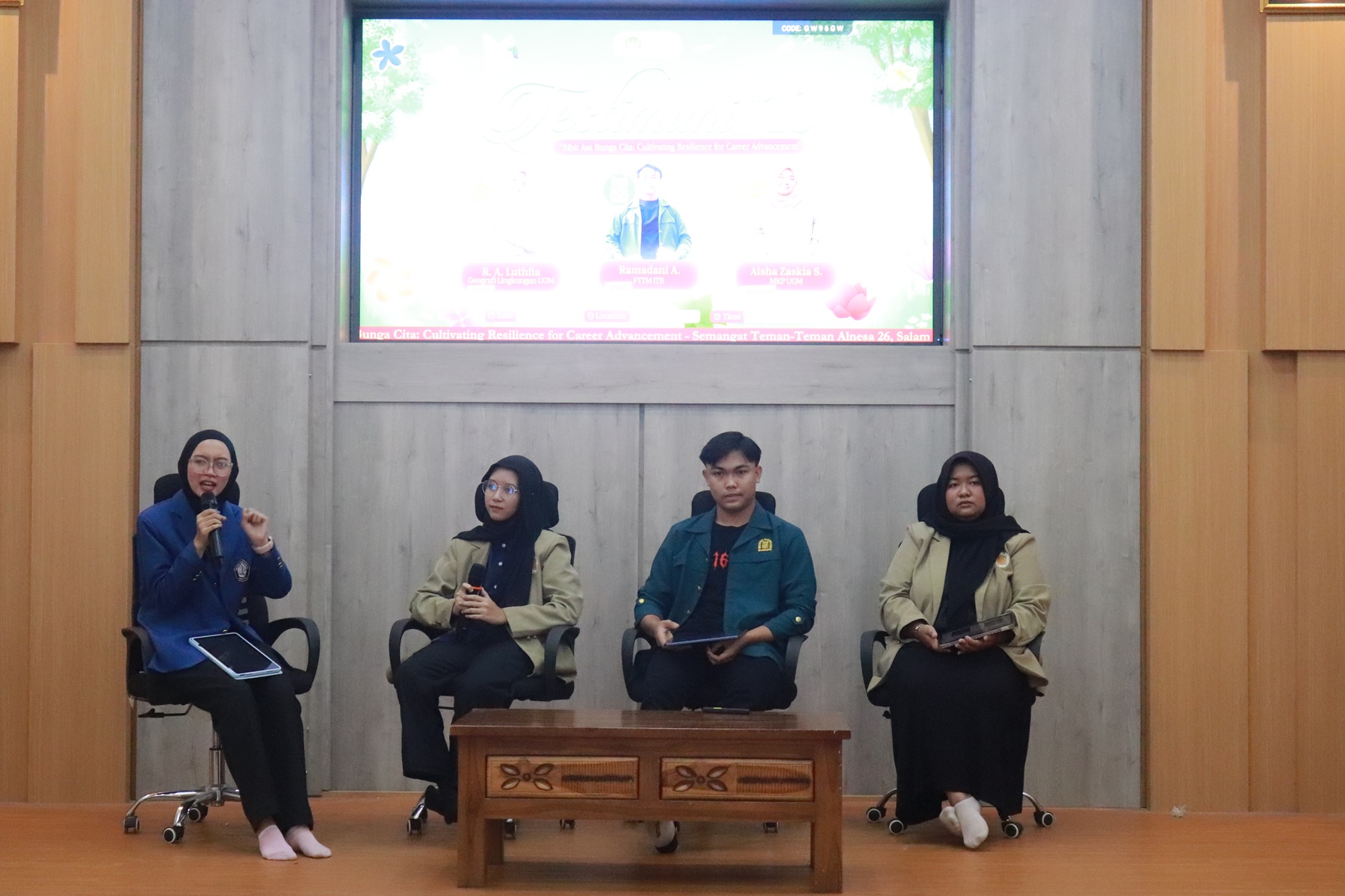 Sementara itu, RA Luthfia membagikan pengalamannya lolos SNBP, jalur seleksi yang berbasis rapor dan rekam jejak akademik. Luthfia menegaskan bahwa SNBP harus dipersiapkan sejak awal masa belajar, terutama dalam menentukan jurusan tujuan. “Idealis itu penting, tetapi realistis juga wajib. Kita perlu memahami dengan detail program studi yang kita pilih, termasuk alternatif prodi yang serumpun, agar tetap sejalan dengan minat dan peluang,” jelas Luthfia. Luthfia juga mengingatkan bahwa murid yang diterima melalui SNBP tidak dapat mengikuti jalur seleksi lain, sehingga keputusan harus benar-benar matang dan sesuai passion.