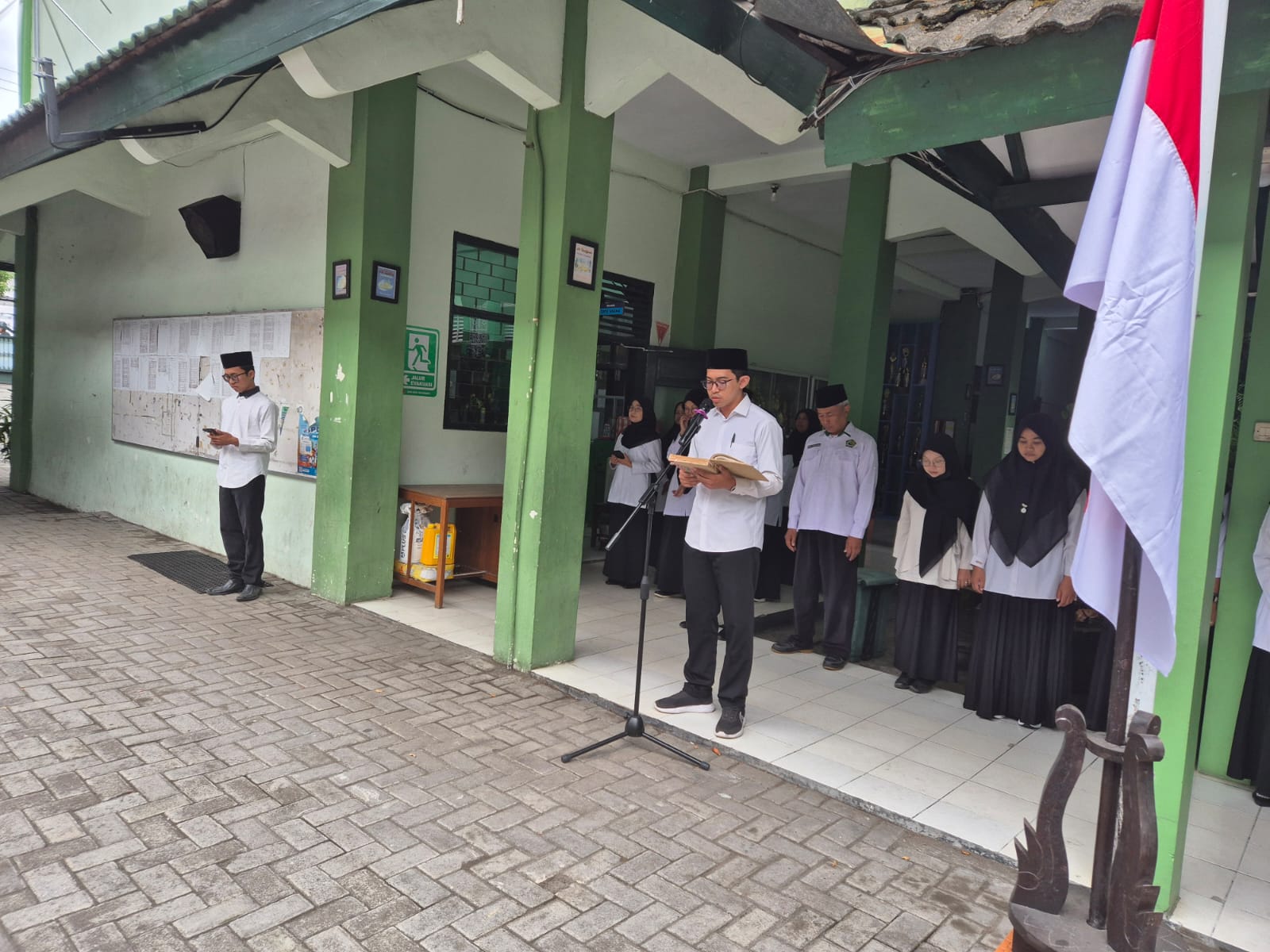Ustadz Wafi membacakan doa dengan suara merdu dan penuh kekhusyukan, sementara seluruh peserta mengaminkan doa tersebut dengan tenang. Kegiatan ini menjadi bentuk nyata pembiasaan spiritual yang senantiasa dijaga dan ditanamkan kepada seluruh siswa MIN 1 Yogyakarta sejak hari pertama mereka menempuh pendidikan di madrasah ini.